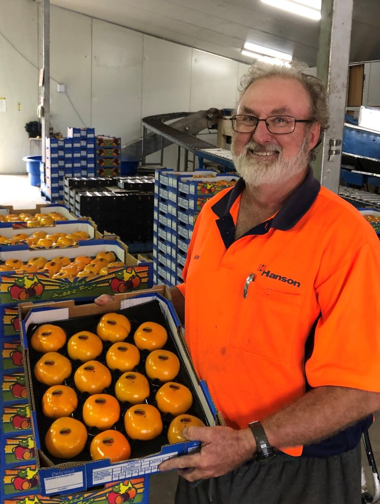 Queensland persimmon grower, Ross Stuhmcke prepares a consignment of his delicious fruit for a trial shipment bound for Thailand.
